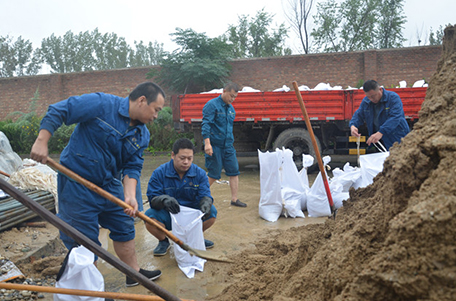 公司裝運沙袋 助力防洪工作