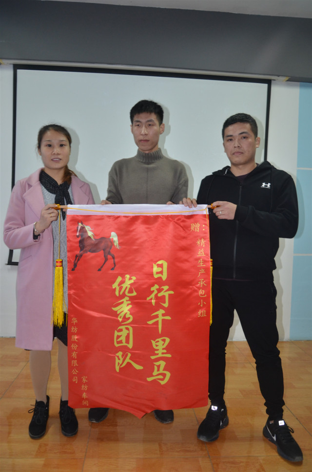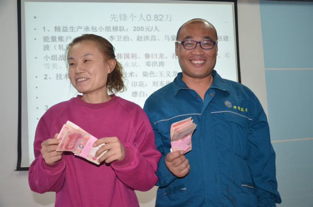 今年6月-10月,家紡車間精益生產(chǎn)小組成員標(biāo)準(zhǔn)操作能量值匯總排名前10位的員工是:340絲光精益生產(chǎn)小組朱兵兵以1585分排名首位,以下依次為:特整精益生產(chǎn)小組楊猛、定型整理精益生產(chǎn)小組趙洪昌、冷染精益生產(chǎn)小組陳長(zhǎng)興、340絲光精益生產(chǎn)小組孔慶凡、冷染精益生產(chǎn)小組王士波、320拉幅精益生產(chǎn)小組劉曉斐、320拉幅精益生產(chǎn)小組馬蒙蒙、360定型拉幅機(jī)李奎、340絲光精益生產(chǎn)小組李海通。10月份精益生產(chǎn)小組(戰(zhàn)隊(duì))前三甲為:360拉幅精益生產(chǎn)小組、320拉幅精益生產(chǎn)小組、印花精益生產(chǎn)小組。質(zhì)量完成好生產(chǎn)小組是:卷烘精益生產(chǎn)承包小組、印制精益生產(chǎn)承包小組、軋染精益生產(chǎn)承包小組和翻縫精益生產(chǎn)承包小組。340絲光機(jī)傘柄箱改造、燒毛機(jī)濾芯防護(hù)、軋光機(jī)尼龍輥處加照明、執(zhí)行管理標(biāo)準(zhǔn)化看板創(chuàng)新等四項(xiàng)提案,為10月份優(yōu)秀提案;“烽火狼戰(zhàn)隊(duì)”340絲光精益生產(chǎn)承包小組榮膺紅色千里馬錦旗,同時(shí)獲得每人2000元、小組總計(jì)10000元的獎(jiǎng)金,另有四個(gè)小組分別獲得8000元、6000元、4000元、3000元不等的獎(jiǎng)金;“質(zhì)量先鋒”卜程程、藺春嶺各獲2000元獎(jiǎng)金。