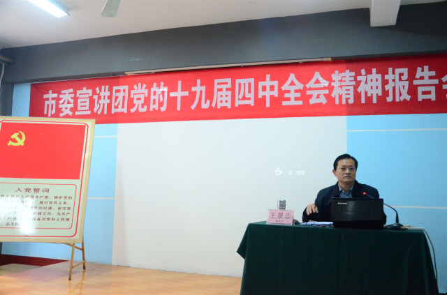 11月30日,市委宣講團(tuán)成員,市生態(tài)環(huán)境局黨組成員、副局長王景志來到公司,為黨員代表和骨干管理者代表宣講了黨的十九屆四中全會精神。