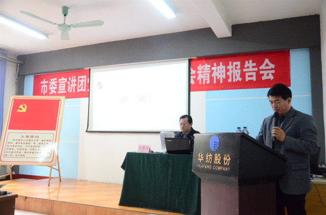 通過宣講學(xué)習(xí),公司黨員代表和管理者代表紛紛表示,一定要凝心聚力,開拓創(chuàng)新,把思想行動統(tǒng)一到黨的十九屆四中全會精神上來,持續(xù)深入學(xué)習(xí)全會精神,切實抓好全會部署的各項決策任務(wù)的落實。公司黨委副書記、總經(jīng)理閆英山談到:“通過宣講學(xué)習(xí),讓我們進(jìn)一步了解了全會精神,為我們?nèi)A紡這樣的國有企業(yè)指明了前進(jìn)方向。我們要堅定不移地貫徹、落實好全會精神,大力推進(jìn)轉(zhuǎn)型升級、提質(zhì)增效,努力實現(xiàn)新時代華紡的高質(zhì)量發(fā)展,不懈推動‘一體兩翼’發(fā)展布局,持續(xù)做強(qiáng)華紡品牌,為經(jīng)濟(jì)社會高質(zhì)量發(fā)展作出更大貢獻(xiàn)。”宣講報告會由公司副總經(jīng)理孫玉濤主持。