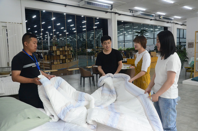 魏經(jīng)理:我們英儂公司主要負(fù)責(zé)品牌運(yùn)營(yíng)及銷售,線上線下齊頭并進(jìn),相輔相成。目前華紡、Linpure藍(lán)鉑、霄霓等品牌已經(jīng)投入“地?cái)偨?jīng)濟(jì)”。,線下各省市實(shí)體店推出平價(jià)銷售款,線上設(shè)立“地?cái)倢^(qū)”,竭誠(chéng)為廣大消費(fèi)者提供優(yōu)質(zhì)紡織品帶來(lái)的舒心愜意的享受。