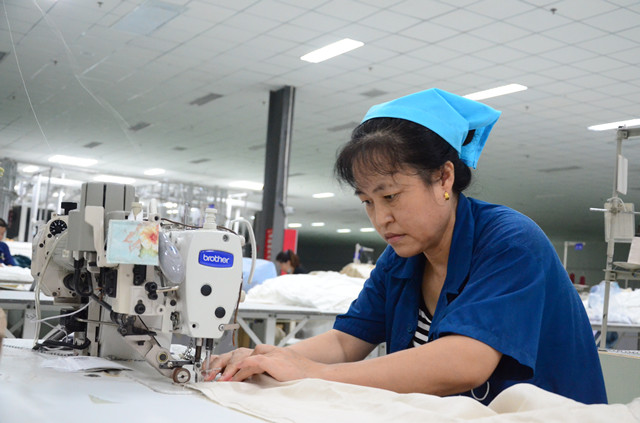導(dǎo)讀:今年49歲的劉青云是公司家紡成品車間縫制三班的縫制工,也是全班19名成員中的“老大姐”。
