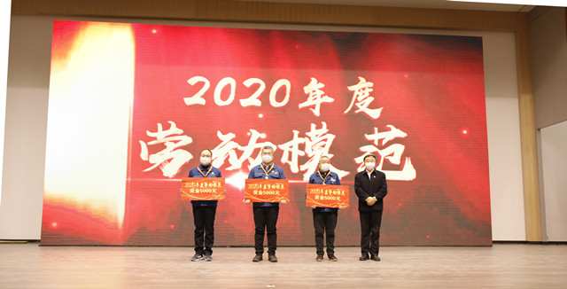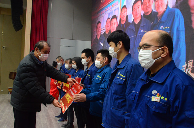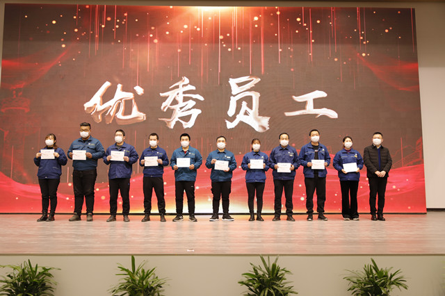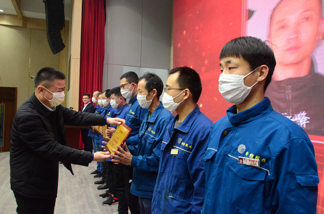 1月16日,公司在嚴(yán)格規(guī)范疫情防控前提下,在公司新近啟用的會議中心舉行了年度持續(xù)深化精益生產(chǎn)總結(jié)會議。會上,公司黨委書記、董事長王力民為2020年度優(yōu)秀黨支部、優(yōu)秀團隊、優(yōu)秀研發(fā)團隊、勞動模范、戰(zhàn)疫優(yōu)秀員工代表頒獎;總經(jīng)理閆英山為“華紡工匠”、十佳精益輪班(工段)長、十佳精益技術(shù)人員、十佳精益操作能手、優(yōu)秀員工代表頒獎;副總經(jīng)理李風(fēng)明為優(yōu)秀CQI項目、創(chuàng)新攻關(guān)項目、優(yōu)秀精益機組頒獎。王力民做了題為《同心同德  繼往開來》的年度工作報告。會議由公司團委書記陳冰主持。