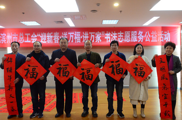 1月29日,市總工會在市職工活動中心舉行“迎新春 送萬福 進(jìn)萬家”書法志愿服務(wù)公益活動舉,邀請到市書法家協(xié)會的5位書法家現(xiàn)場書寫春聯(lián)、福字。公司勞模代表和職工代表與渤?;钊?、交運(yùn)集團(tuán)的代表一道,參加此次活動。