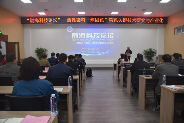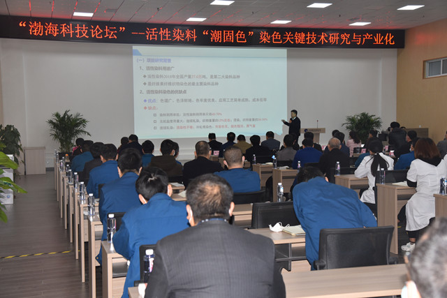 在本次渤??萍颊搲?,來自東華大學化學化工與生物工程學院副院長、國家先進印染技術(shù)創(chuàng)新中心主任,教授、博士生導師毛志平做了題為《活性染料“潮固色”染色相關(guān)機理研究》的學術(shù)報告;山東省短流程印染新技術(shù)重點實驗室研發(fā)員、博士馬輝做了題為《活性染料“潮固色”工藝設(shè)計及優(yōu)化》的學術(shù)報告;魯豐織染有限公司技術(shù)研發(fā)部經(jīng)理、研究員齊元璋做了題為《純棉潮固色生產(chǎn)實踐》的學術(shù)報告;青島大學紡織服裝學院青年講師蔣陽做了題為《紡織化學品與染料創(chuàng)新促進印染行業(yè)高質(zhì)量可持續(xù)發(fā)展》的學術(shù)報告。