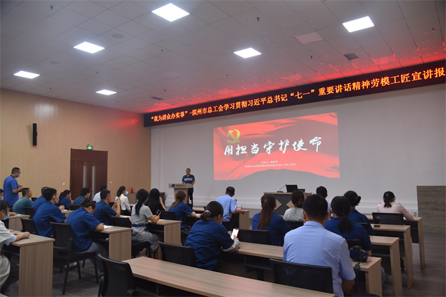 導(dǎo)讀:由濱州市總工會(huì)主辦的“我為群眾辦實(shí)事”學(xué)習(xí)宣傳貫徹習(xí)近平總書(shū)記“七一”重要講話(huà)精神勞模(工匠)宣講報(bào)告會(huì)首次宣講,在公司會(huì)議中心舉辦。