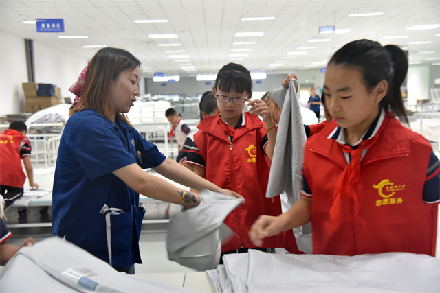 導讀:9月23日,濱城區(qū)玉龍湖小學四年級學生在老師帶領下走進公司,實地參觀了公司的生產車間以及部分展廳,現(xiàn)場體驗了家紡產品驗整及包裝等生產環(huán)節(jié),感受勞動的艱辛與快樂。