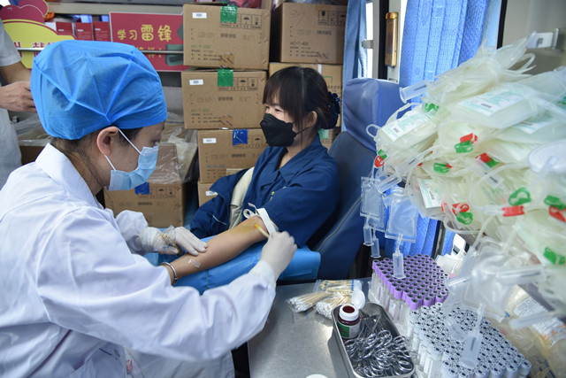 獻(xiàn)血隊(duì)伍中,既有工作多年的老同志,也有剛剛參加工作的新員工。獻(xiàn)血車就位后,員工在濱州市中心血站工作人員的指導(dǎo)下,認(rèn)真填寫獻(xiàn)血登記表、測(cè)量血壓、抽血化驗(yàn),經(jīng)血液檢驗(yàn)合格后開始獻(xiàn)血。“我參加無償獻(xiàn)血的初衷,就是想盡自己的一點(diǎn)力量。”在場(chǎng)參與獻(xiàn)血的一名員工說到。簡單的一句話,展現(xiàn)的卻是充滿溫暖情感的無私之愛。