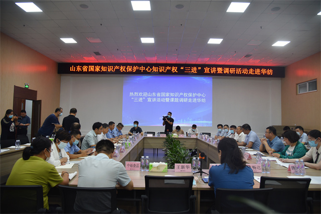 導(dǎo)讀:7月29日,山東省市場(chǎng)監(jiān)管局市場(chǎng)稽查專員蘇鵬、省國(guó)家知識(shí)產(chǎn)權(quán)保護(hù)中心副主任尹強(qiáng)民一行18人,來到華紡股份有限公司開展知識(shí)產(chǎn)權(quán)“三進(jìn)”宣講暨調(diào)研活動(dòng)。
