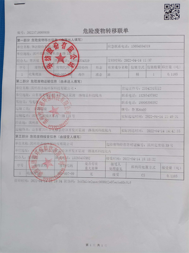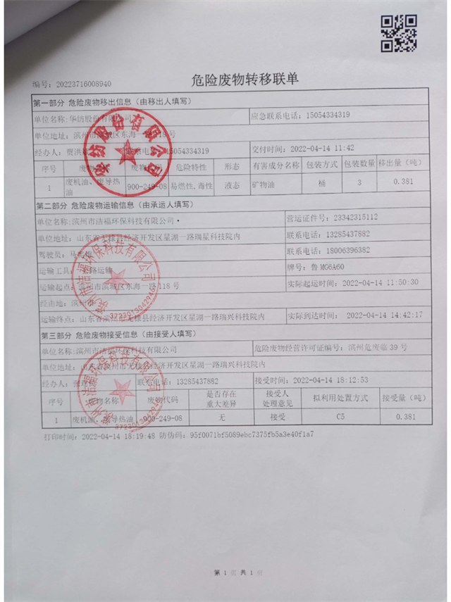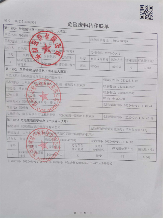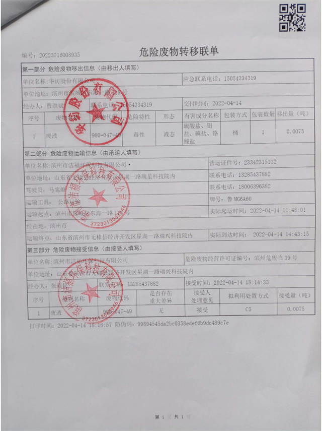 導讀:華紡股份有限公司2022年危險廢物信息公示