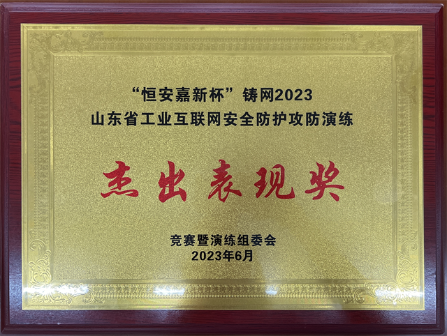 6月19日,由山東省通信管理局組織的“恒安嘉新杯”鑄網(wǎng)2023山東省工業(yè)互聯(lián)網(wǎng)安全防護技能競賽暨攻防演練在濟南舉辦,由公司信息中心組成的華紡隊以卓越的表現(xiàn)獲得由山東省通信管理局頒發(fā)的“杰出表現(xiàn)獎”。