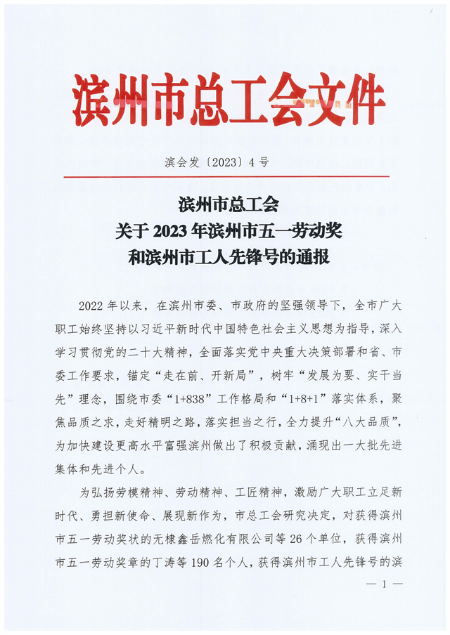 導(dǎo)讀:近日,濱州市總工會(huì)發(fā)布了“關(guān)于2023年濱州市五一勞動(dòng)獎(jiǎng)和濱州市工人先鋒號(hào)的通報(bào)”,