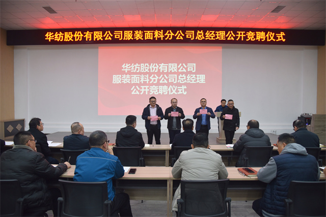 3月9日,公司在2號(hào)會(huì)議室舉行服裝面料分公司總經(jīng)理公開競(jìng)聘儀式。