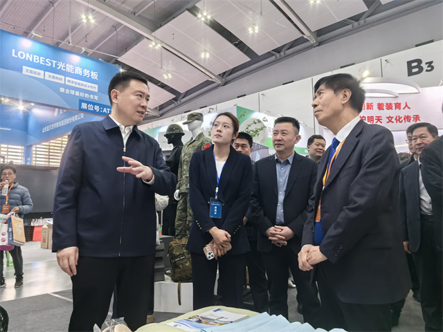 展會(huì)期間,教育部關(guān)心下一代工作委員會(huì)常務(wù)副主任王富,濱州市委常委、副市長(zhǎng)屈躍寬等領(lǐng)導(dǎo)來到公司展位前參觀指導(dǎo),詳細(xì)了解了產(chǎn)品的核心優(yōu)勢(shì)和應(yīng)用價(jià)值。領(lǐng)導(dǎo)們對(duì)公司在教育紡織品領(lǐng)域的創(chuàng)新能力和技術(shù)優(yōu)勢(shì)給予了充分肯定,并對(duì)公司未來在教育領(lǐng)域的發(fā)展寄予厚望。