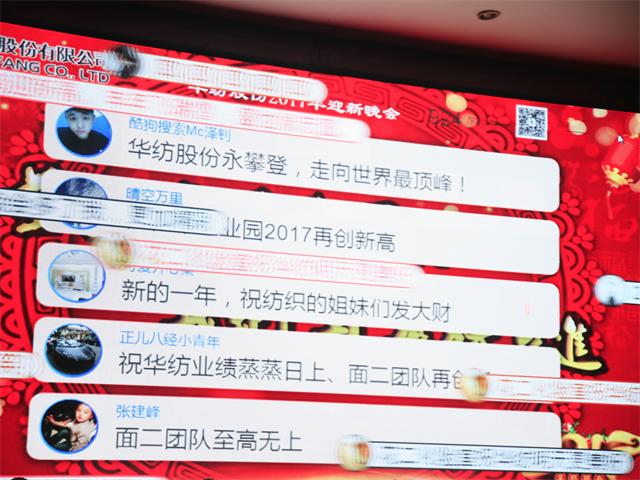 今年華紡“春晚”與往年不同的一個亮點在于,在演出現(xiàn)場加入了“微信彈幕”,現(xiàn)場通過微信關注的觀眾中,有26名觀眾在三次自動搖獎成為幸運觀眾而獲得了獎勵。演出結束后,公司總經(jīng)理閆英山等公司領導,與參加演出的員工合影留念。