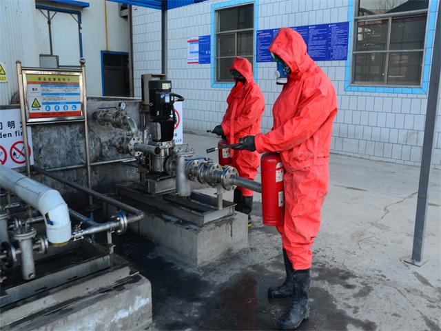 這一幕正是動(dòng)力公司2月20日進(jìn)行防泄漏演練時(shí)的情形。當(dāng)日,動(dòng)力公司按照公司安保部制定的年度應(yīng)急預(yù)案演練大綱,進(jìn)行了一次氨水泄漏應(yīng)急處理演練。同日,面一車(chē)間進(jìn)行了導(dǎo)熱油泄漏現(xiàn)場(chǎng)處置演練。經(jīng)安保部和部門(mén)主管測(cè)評(píng),兩次演練均符合流程標(biāo)準(zhǔn),達(dá)到了預(yù)期效果。