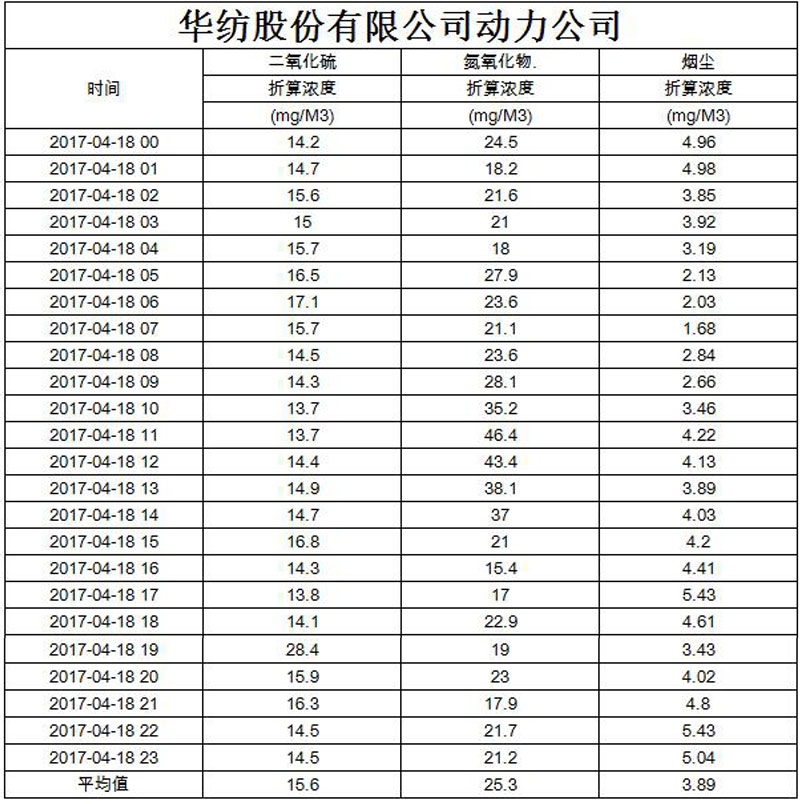 煙氣排放數(shù)據(jù)信息公開2017.4.18數(shù)據(jù)
