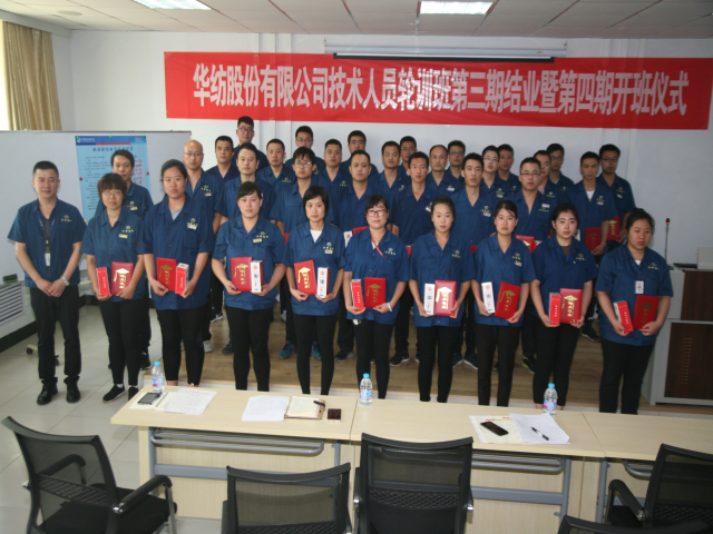 6月18日,公司專業(yè)技術輪訓班第三期結業(yè)暨第四期開班儀式,在公司工程技術研究院舉行。儀式上,工程技術研究院副院長孫紅玉對第三期輪訓工作進行了總結;總工程師羅維新宣讀了《關于對染整專業(yè)技術培訓班(第三期)馬士國等35人準予結業(yè)的通報》、《關于對染整專業(yè)技術培訓班(第三期)優(yōu)秀團隊、優(yōu)秀學員的表彰決定》、《關于對染整專業(yè)技術培訓班(第四期)學員組成的通報》;總經(jīng)理閆英山為第三期輪訓班結業(yè)學員頒發(fā)結業(yè)證書,為優(yōu)秀團隊花二車間小組及馬士國、李義、陳愛民等三名優(yōu)秀學員頒發(fā)獎狀證書,為第四期學員頒發(fā)了專業(yè)學習書籍;王金亮、馬士國、商曉峰分別代表往期學員、本期學員和下期學員發(fā)言;公司黨委書記、董事長王力民圍繞堅持“求學、求知、求真、求實”的作風信條做了重要講話。